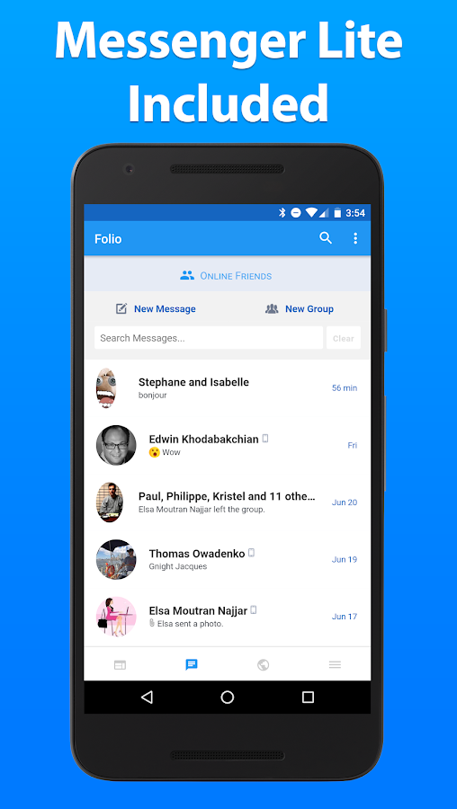 بعد تثبيت التطبيق ستفتحه وسيطلب منك الدخول بالطريقة العادية لكن على المتصفح ، هذا حتى ولو لم تقم بتثبيت تطبيق الفيسبوك الرسمي الذي يمكنك إزالته ، وستشاهد أن التطبيق لن يطلب منك تثبيت ال messager للرد وقراءة الرسائل ، وهو خفيف لن يستهلك موارد هاتفك ، كما يمكنك تخصيصه أكثر بتغيير الثيم إلى أكثر من 30 ثيم متوفرة للتطبيق.